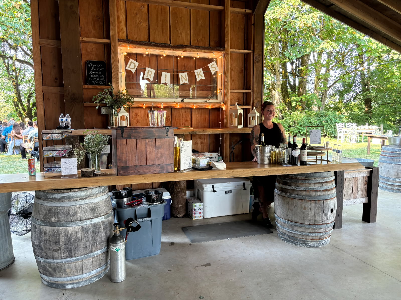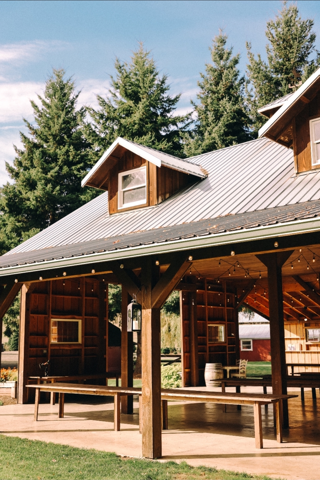 Celebrate your special day at our charming Ridgefield venue, surrounded by lush, blooming flower gardens that create a naturally romantic setting. At the heart of the property stands a rustic barn rich with timeless character, featuring a spacious dance floor and a stunning live-edge bar. An elegant bridal suite offers comfort and privacy, while handcrafted wood tables and chairs add warmth and charm throughout the space. With thoughtful amenities and room to accommodate up to 175 guests, this venue offers the perfect blend of natural beauty, rustic elegance, and modern comfort.