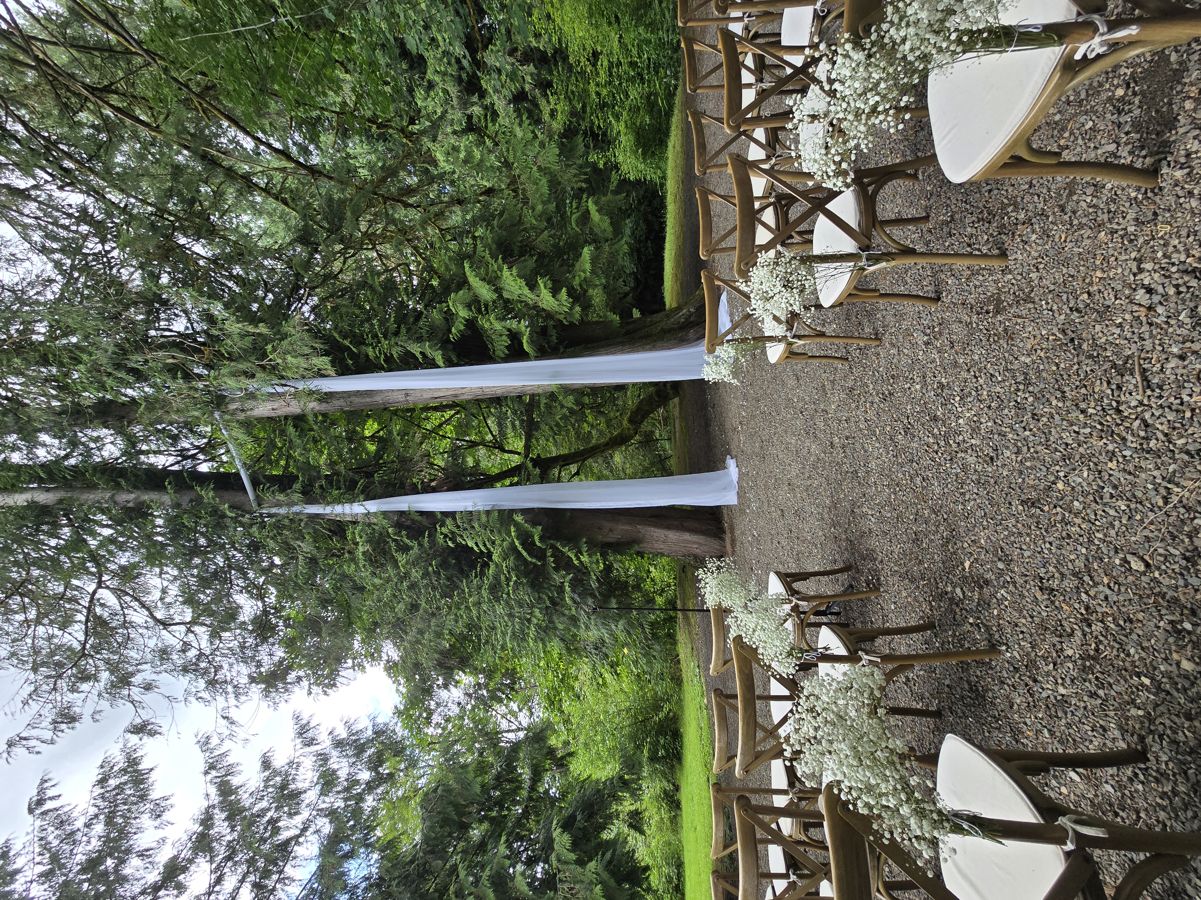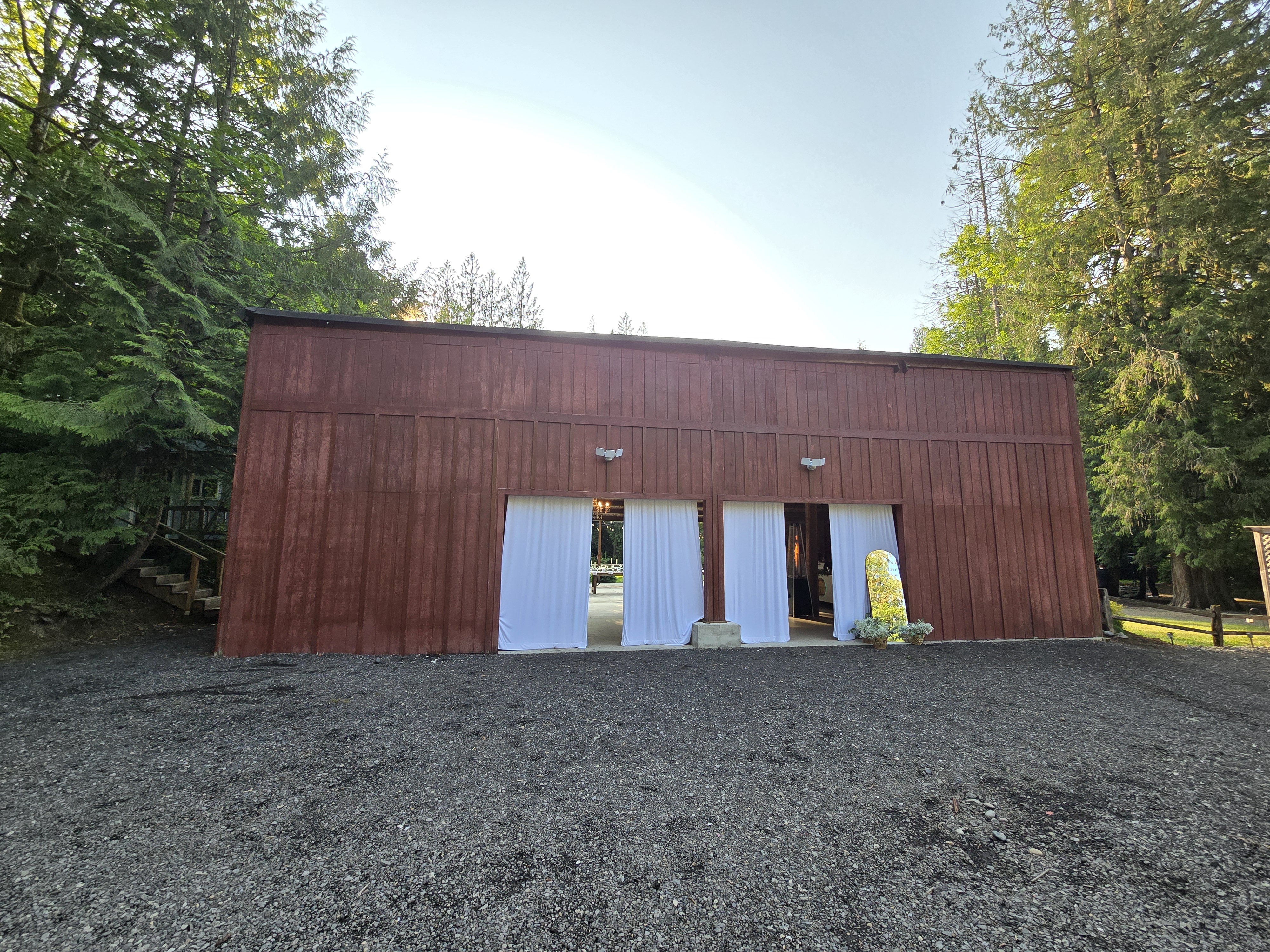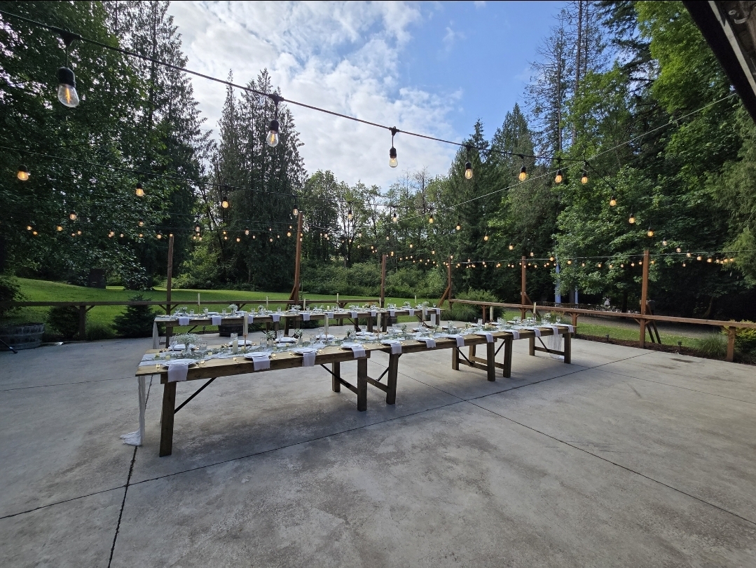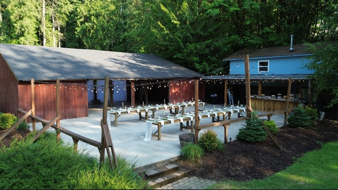 Celebrate your special day tucked away in our private forest Ridgefield property, where towering trees, quiet surroundings, and rustic elegance create an unforgettable atmosphere. Our spacious barn offers a beautiful gathering space with a generous dance floor, welcoming bar area, and a private bridal suite for your comfort. Surrounded by nature yet thoughtfully appointed, the venue accommodates up to 150 guests and includes white tables and chairs for a clean, timeless look. Every detail is designed to provide an intimate, peaceful, and truly memorable celebration.