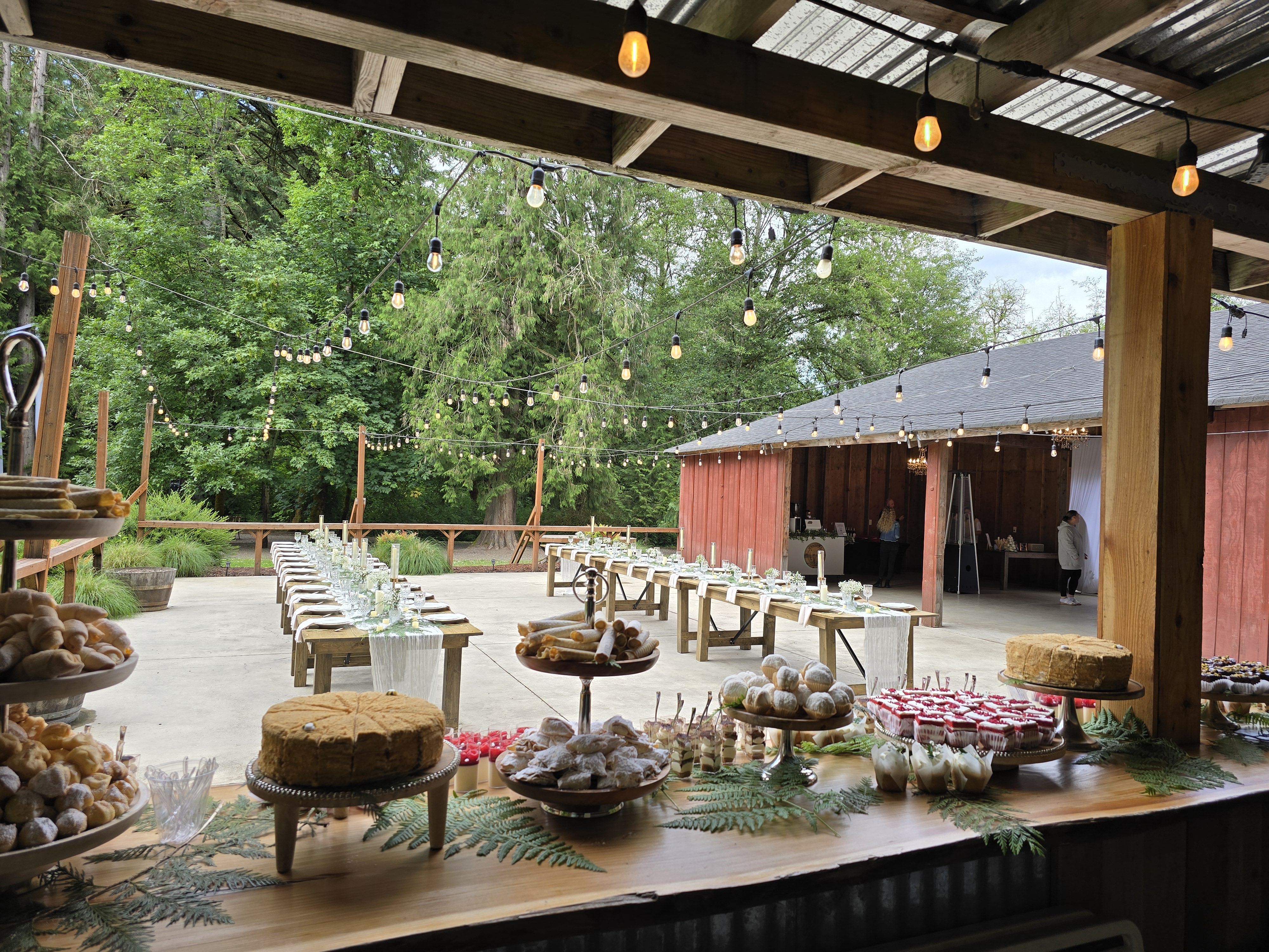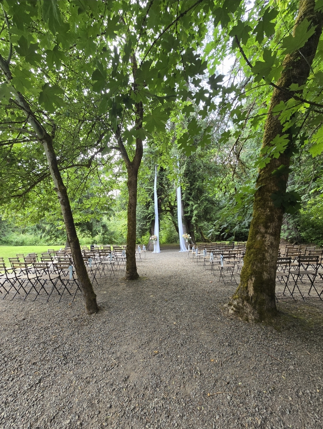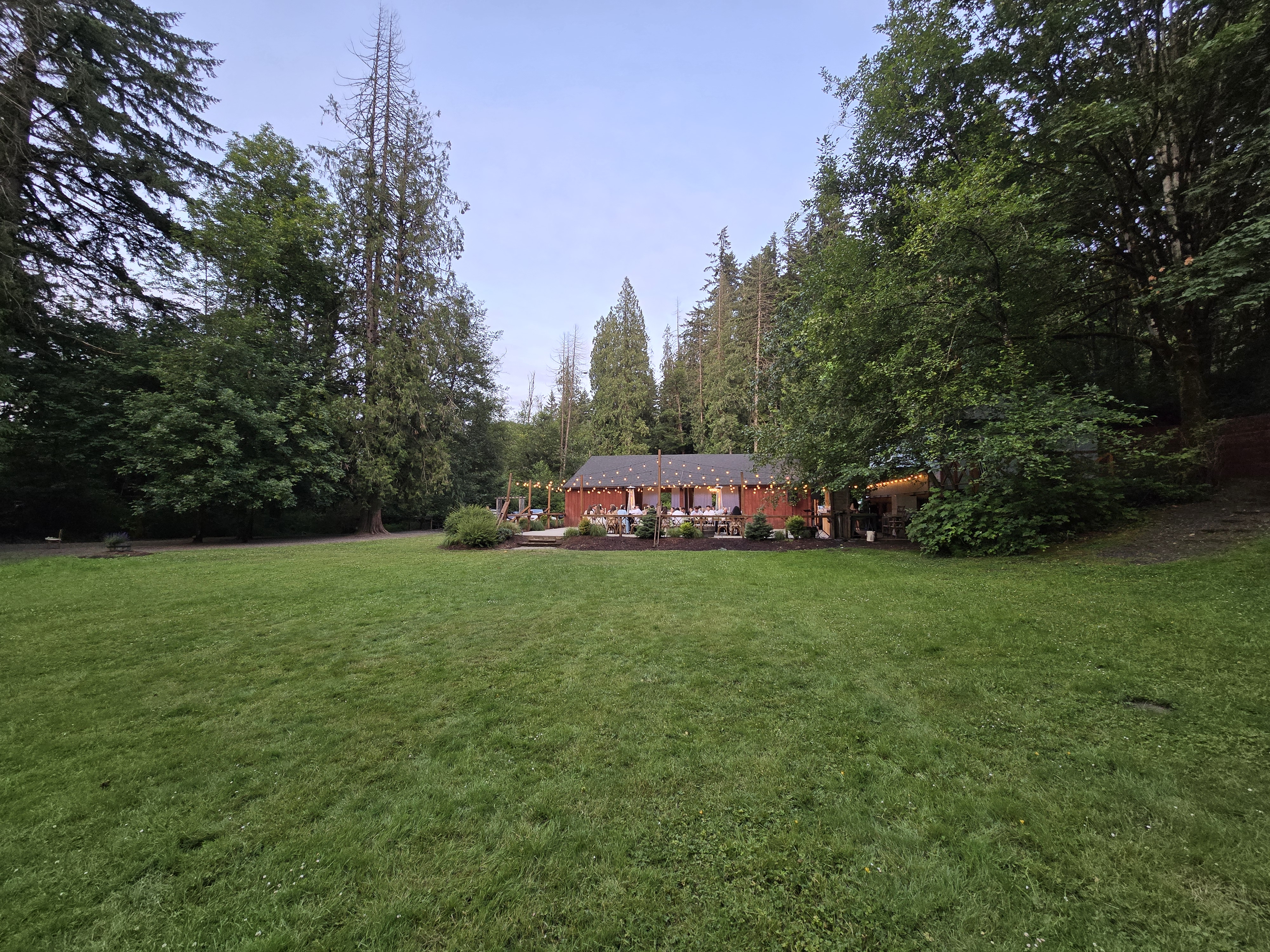 Celebrate your special day tucked away in our private forest Ridgefield property, where towering trees, quiet surroundings, and rustic elegance create an unforgettable atmosphere. Our spacious barn offers a beautiful gathering space with a generous dance floor, welcoming bar area, and a private bridal suite for your comfort. Surrounded by nature yet thoughtfully appointed, the venue accommodates up to 150 guests and includes white tables and chairs for a clean, timeless look. Every detail is designed to provide an intimate, peaceful, and truly memorable celebration.